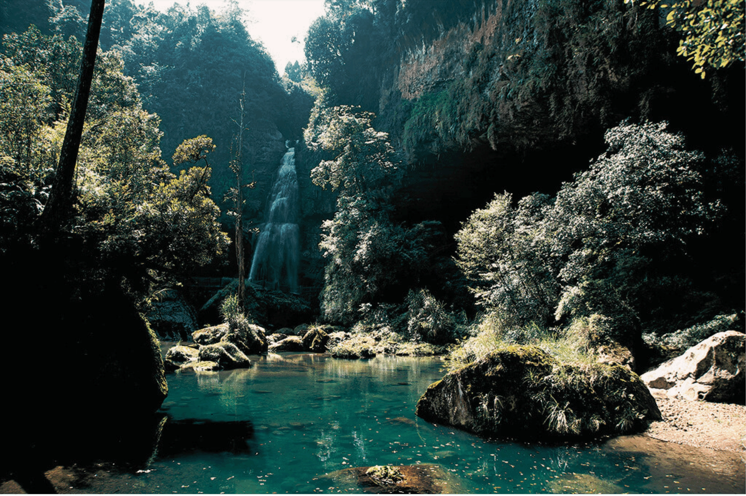A 116-meter tall ribbon of water that plunges into a deep gorge. On foggy days, the waterfall looks like a white dragon emerging from the clouds.