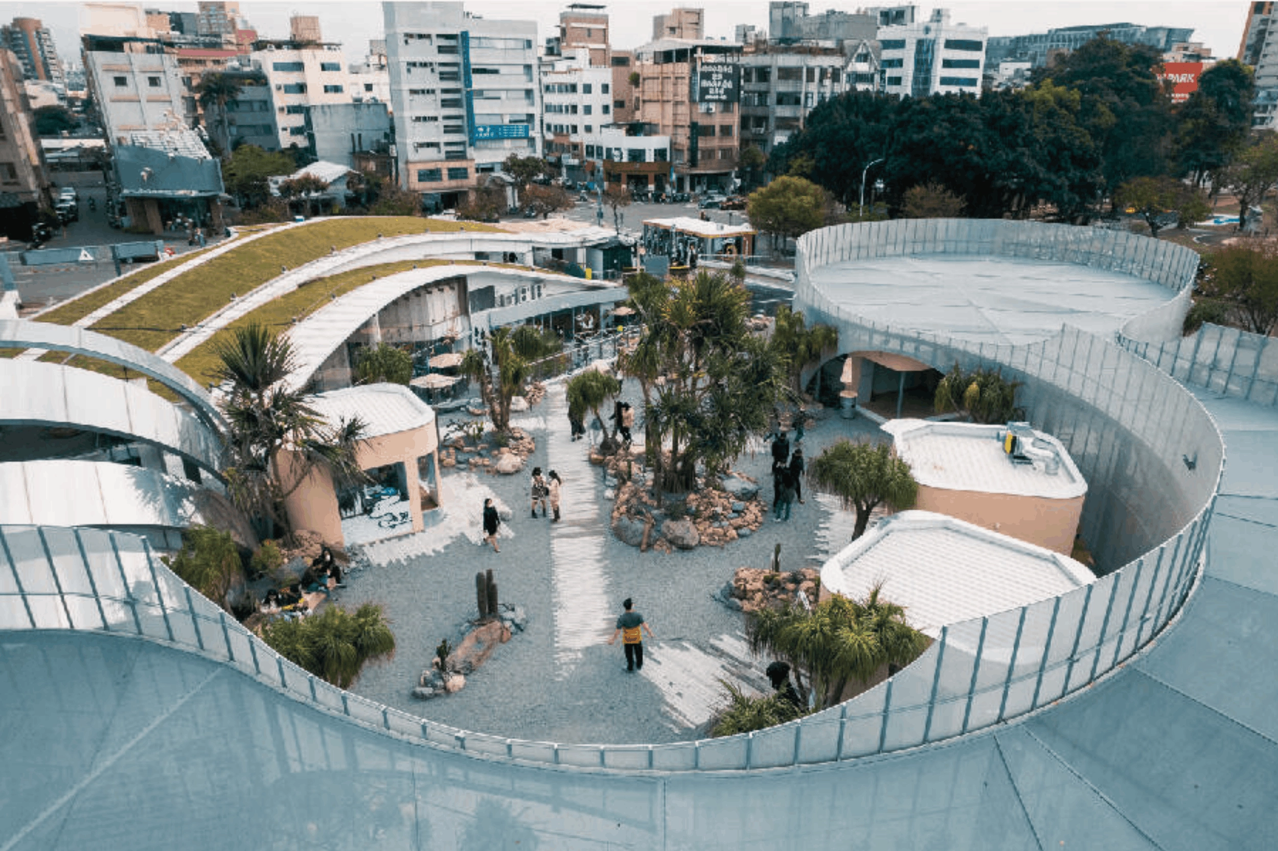 This "adult's park" is the trendiest spot in Taichung. Located in the heart of the greenway, it features a unique sunken desert-style garden filled with cacti and exotic plants.